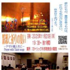 10/24(木)の夜に行われる集い、 【テゼの歌を用いた黙想と祈りの集いーシノドス・ともに歩 …