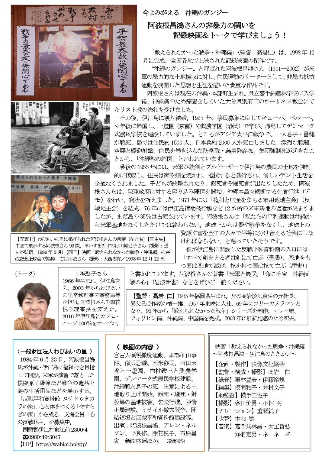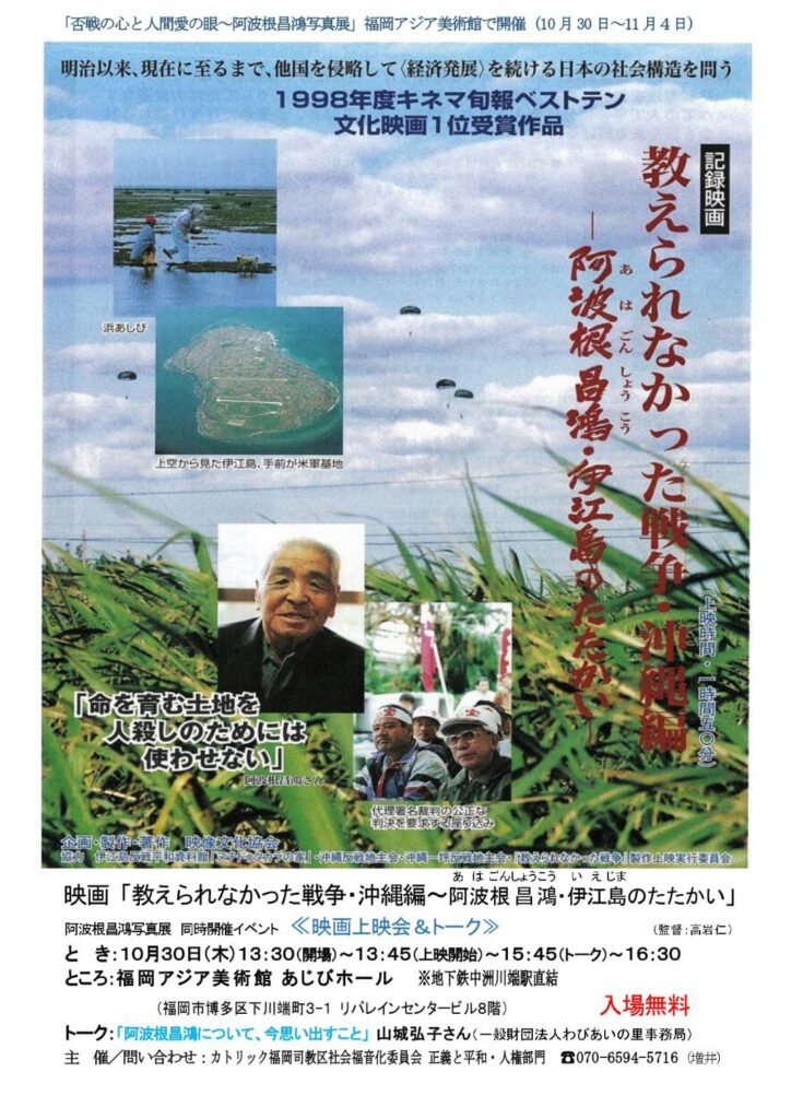 阿波根昌鴻写真展 同時開催イベント≪映画上映会&トーク≫    「教えられなかった戦争・沖縄編~阿波根昌鴻・伊江島のたたかい」上映