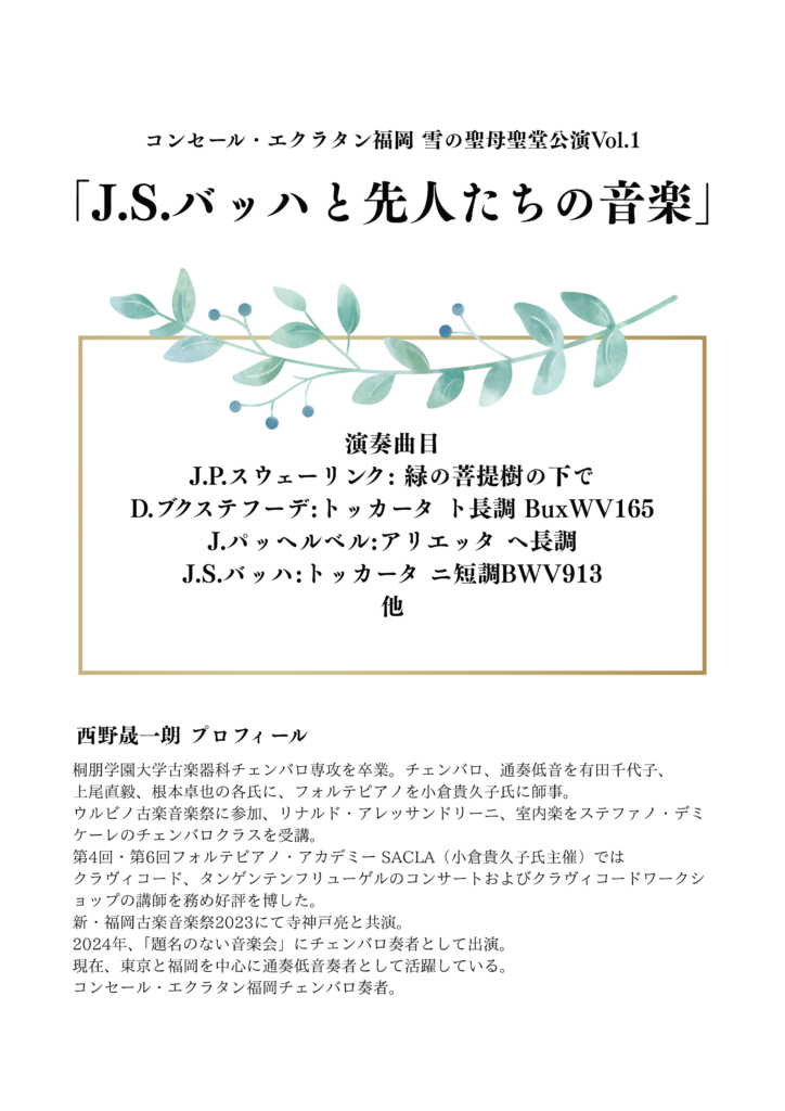 聖マリア病院(福岡県久留米市津福本町422)内の「雪の聖母堂」で演奏会が開催されます。