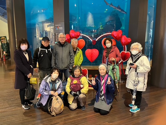 ご希望の方は7時50分にベイサイドプレイス博多の大水槽の前にお集りください。
