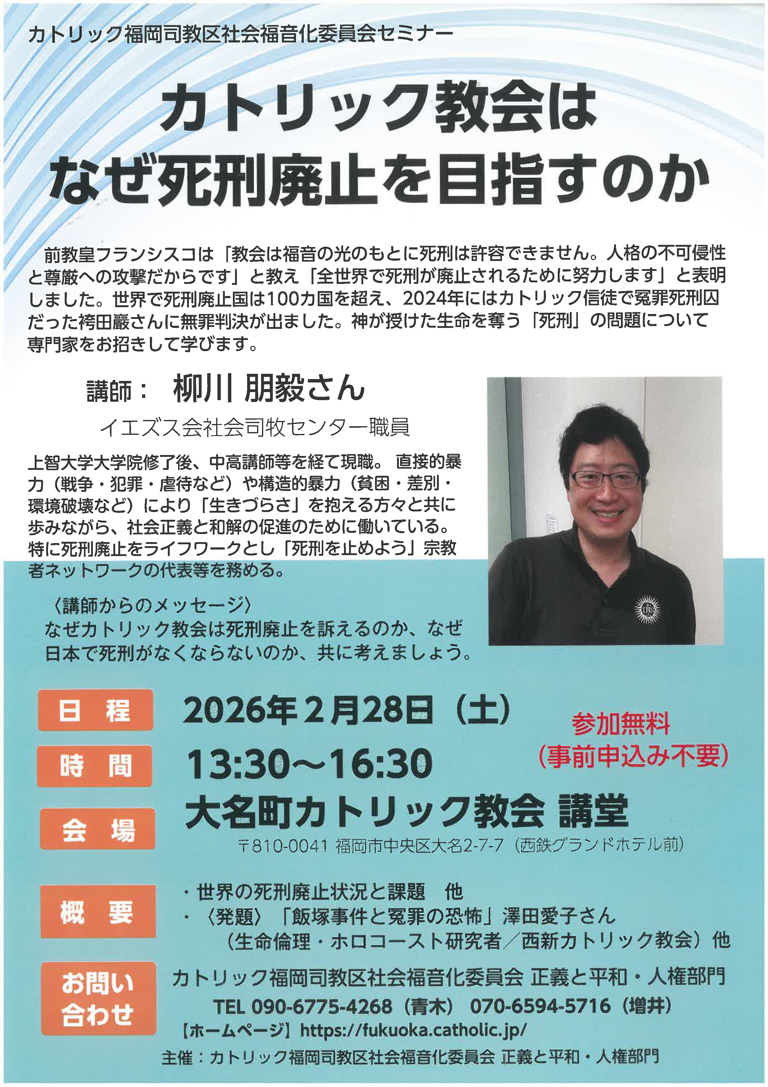 主催:カトリック福岡教区社会福音化委員会 正義と平和・人権部門