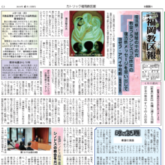 〔1面〕船津助祭誕生、福岡で難民移住移動者全国研修会 〔2面〕教区で2人が祭壇奉仕者に選任、福島家族支援講演会 …