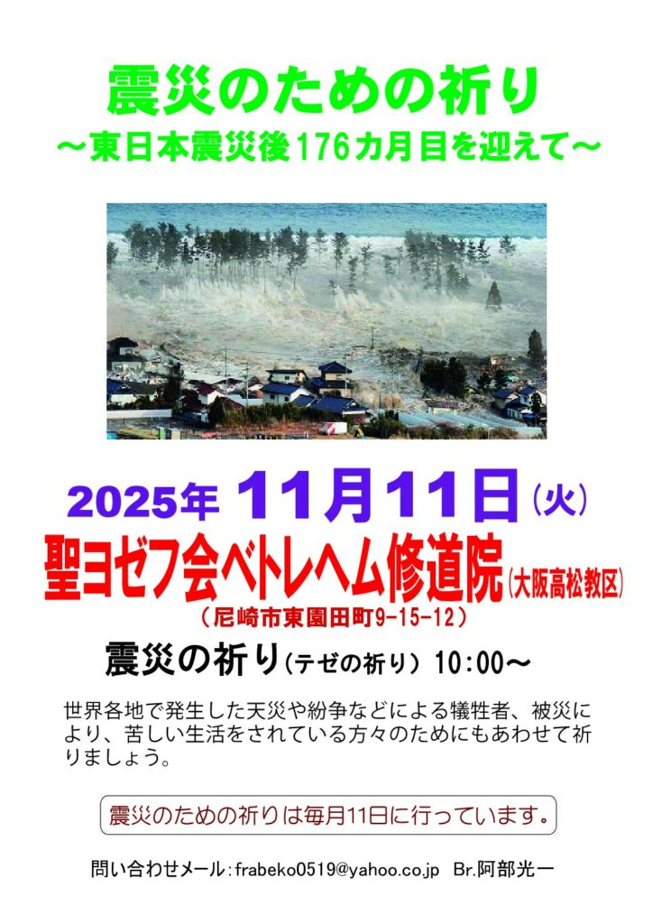 11月11日 震災のための祈り~東日本大震災後176ヶ月を迎えて