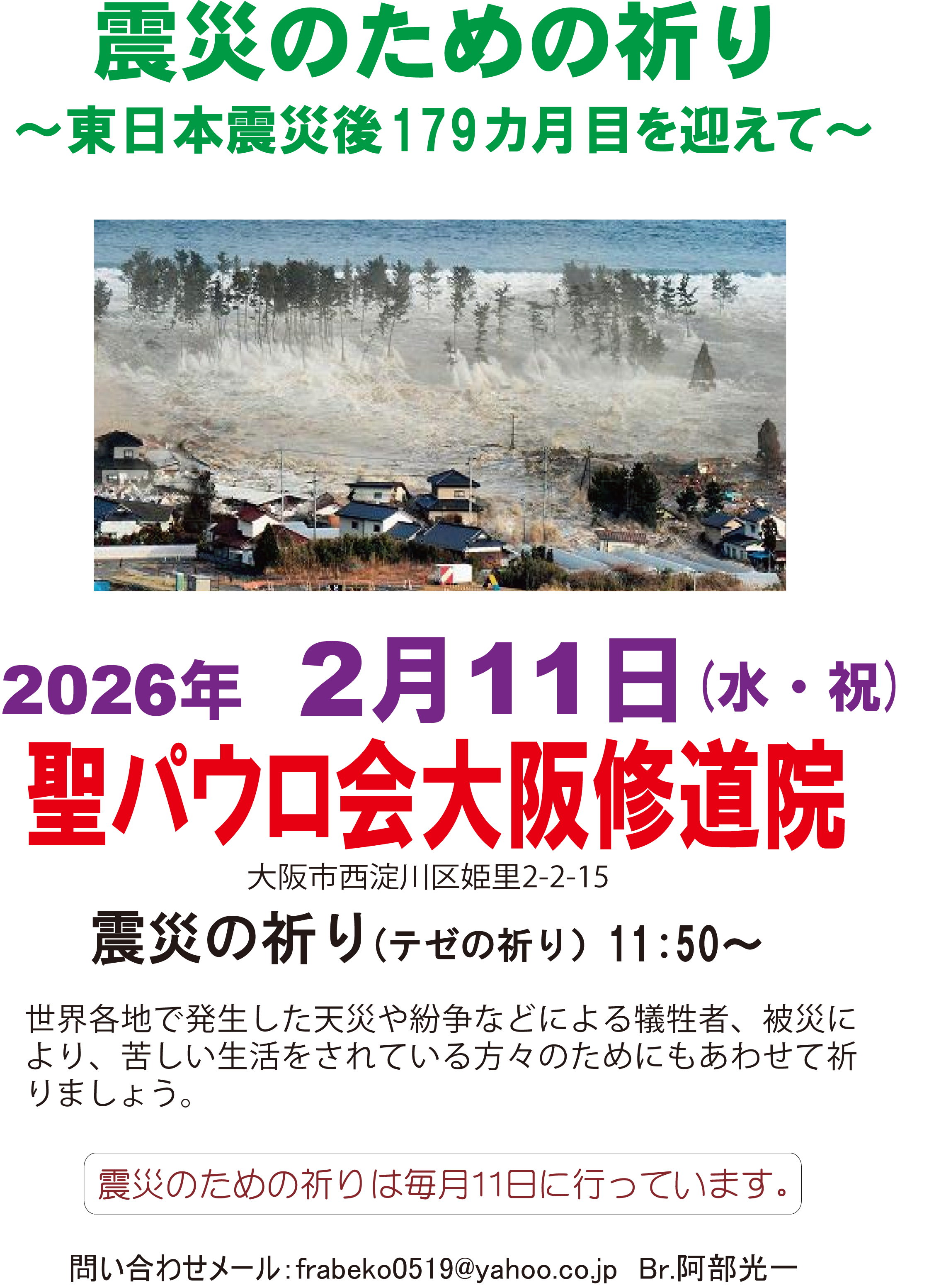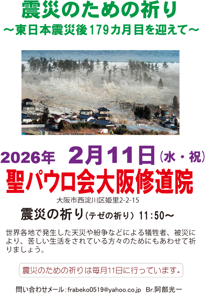 2026年2月11日 震災のための祈り~東日本大震災後179ヶ月を迎えて