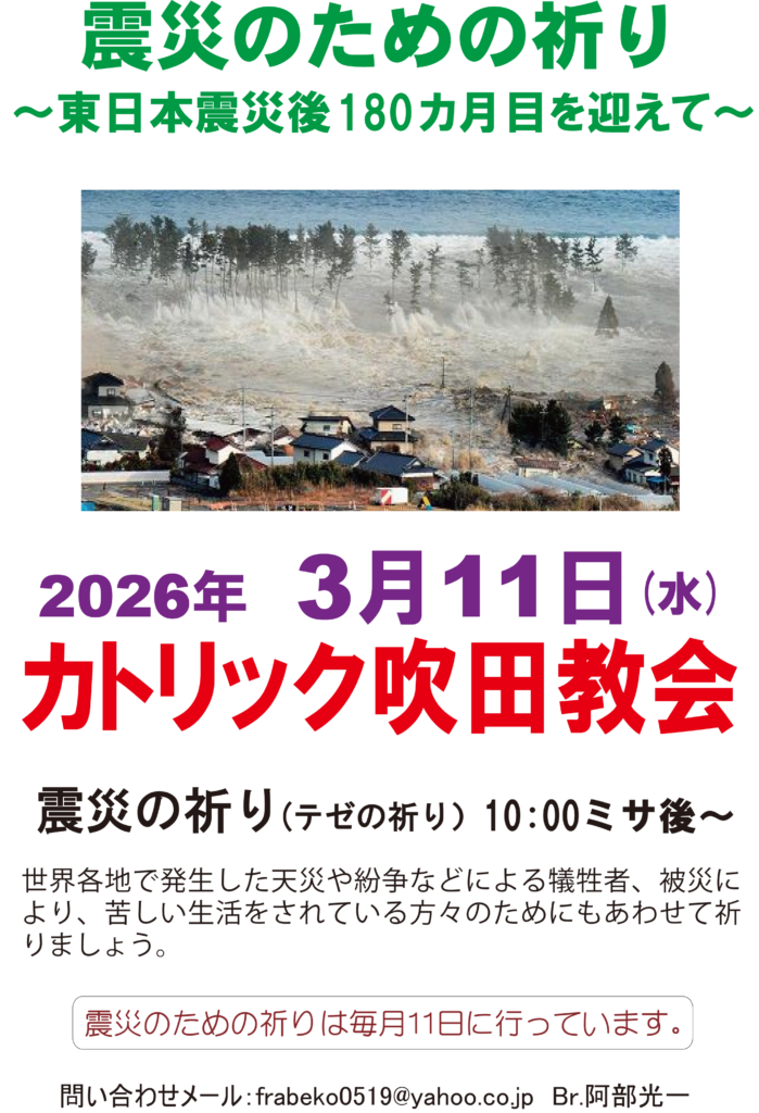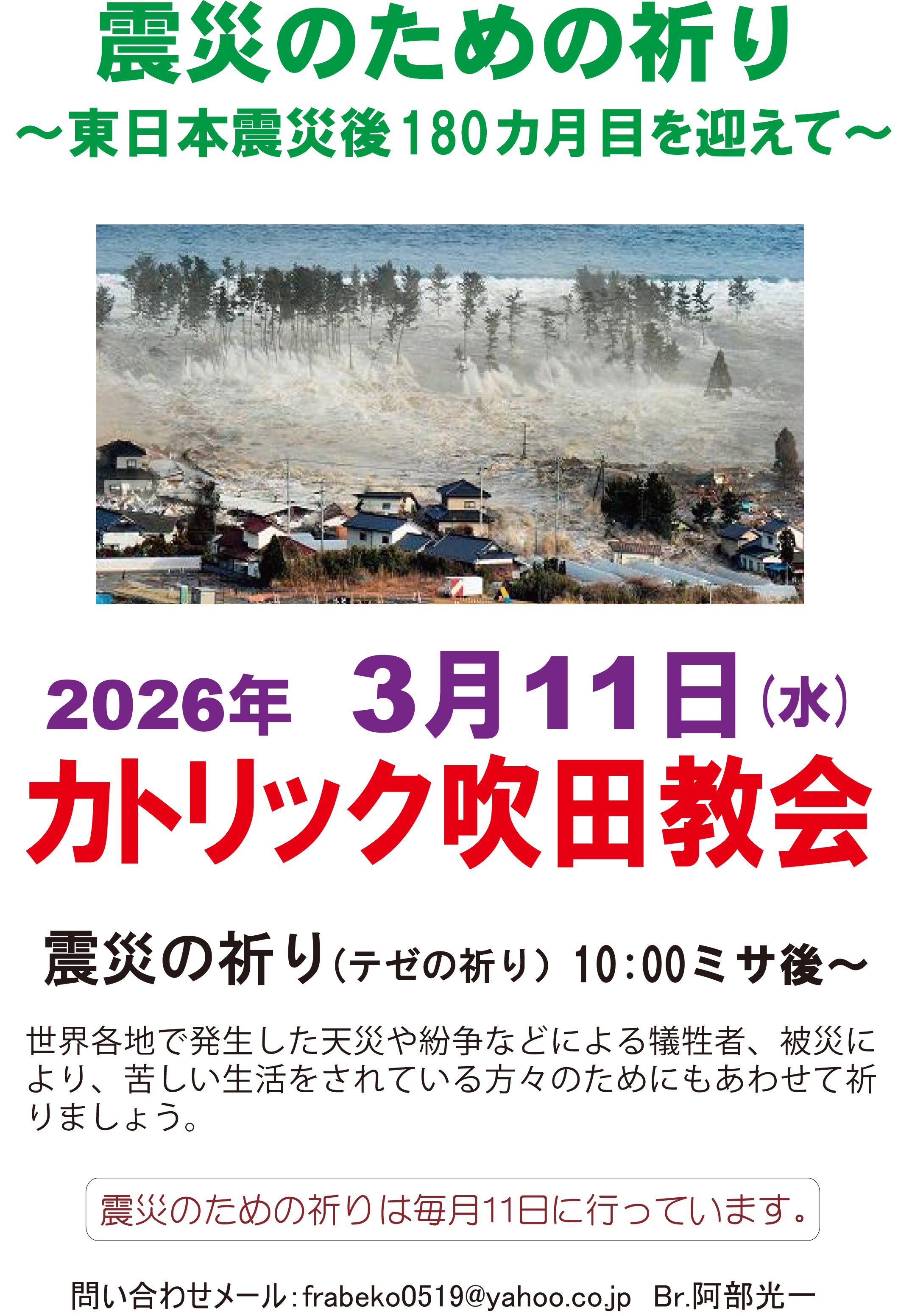 2026年3月11日 震災のための祈り~東日本大震災後180ヶ月を迎えて